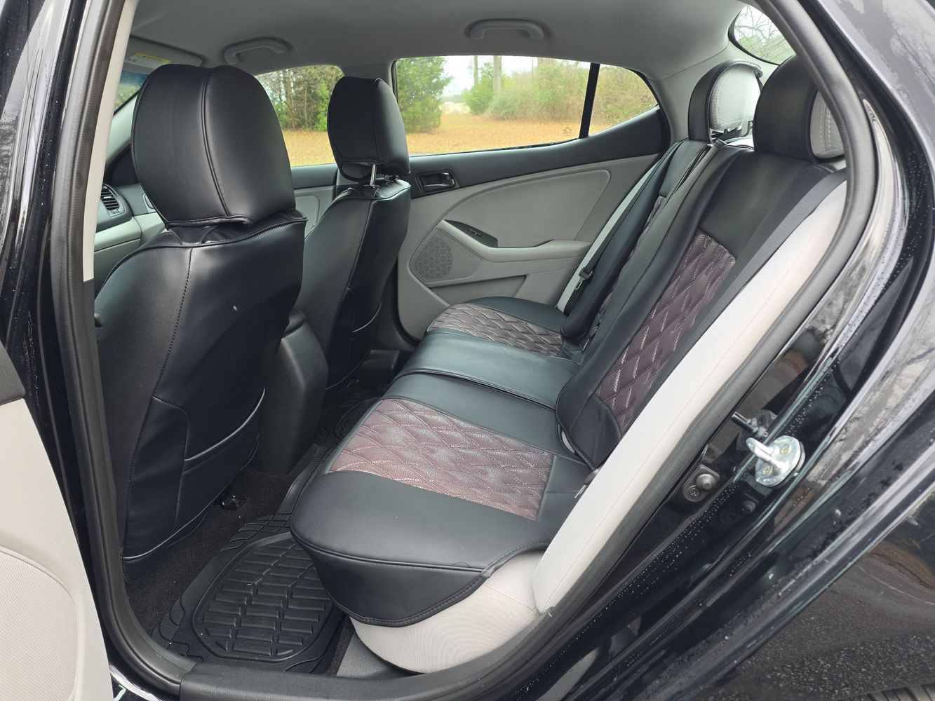 Front seatback upholstery: Plastic front seatback upholstery